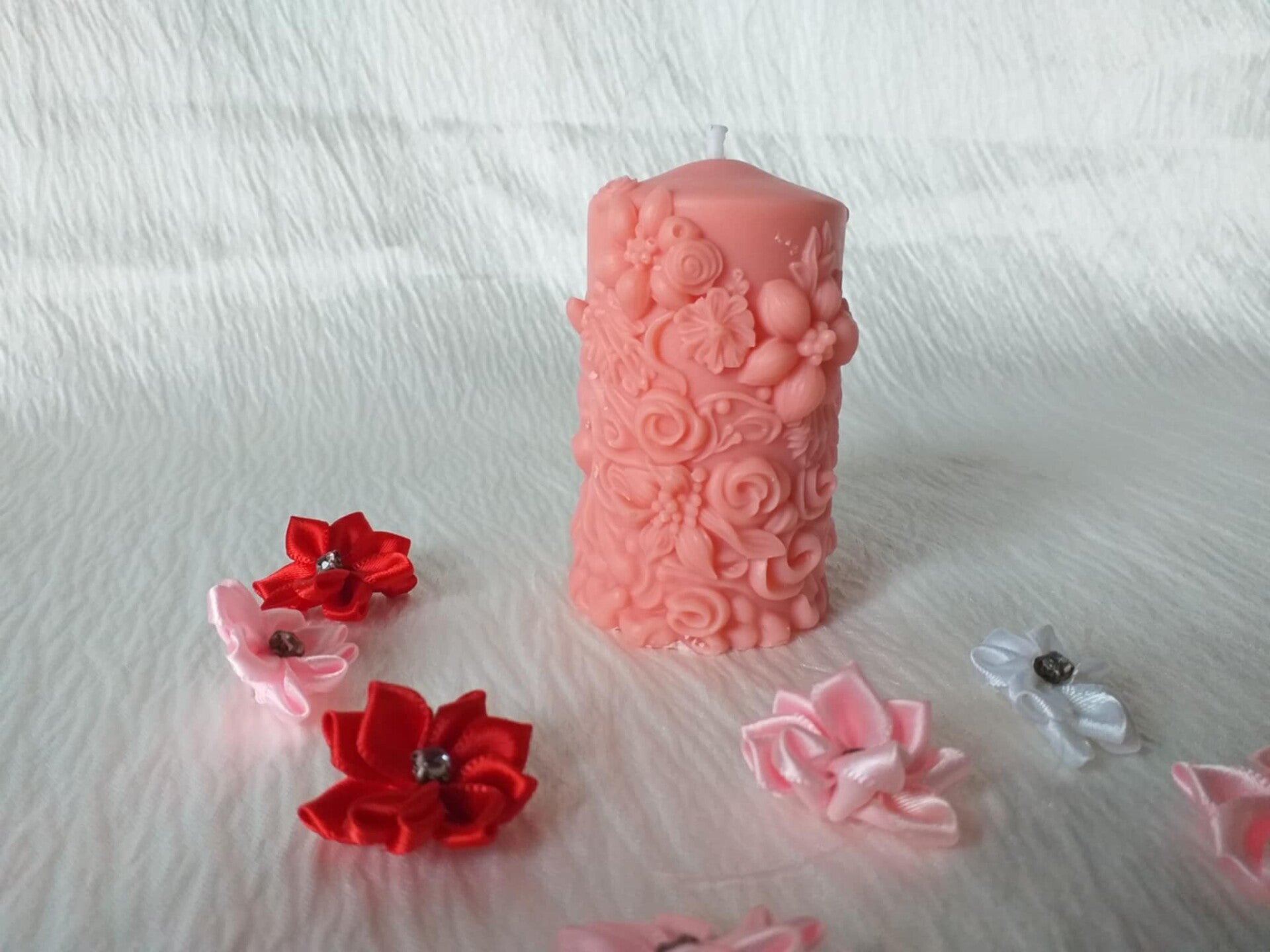 Magnifique bougies ornée de fleur d'une hauteur de 9cm